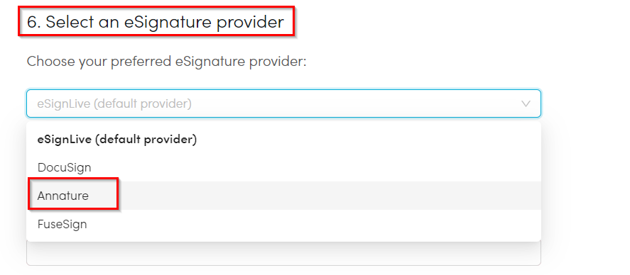 6. Select Annature from the eSignature provider dropdown list.