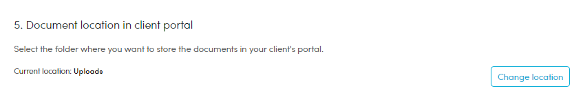 5. By default, esignature requests are stored within the Client's 'Uploads' area. You can select the area in which you want to file the document/s in the client's portal by clicking 'Change location' and choose an exisitng folder or create a new folder.