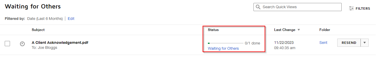 11. The document will sit in both your portal's document > eSignature area under pending and your DocuSign program pending list.