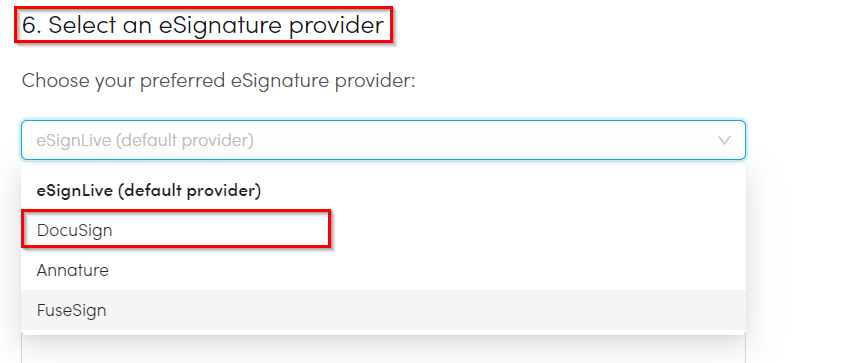 6. Select DocuSign from the eSignature provider dropdown list.