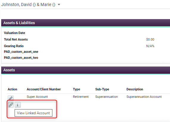 For example: In the images taken from Xplan below, the client has a Superannuation account that has been linked to an IPS portfolio. The Super account shows a 'Link' button and by clicking on it you can see from within the item that it is linked to an IPS portfolio. Upon import from Xplan to myprosperity only the IPS portfolio will import - the linked Super account will not.