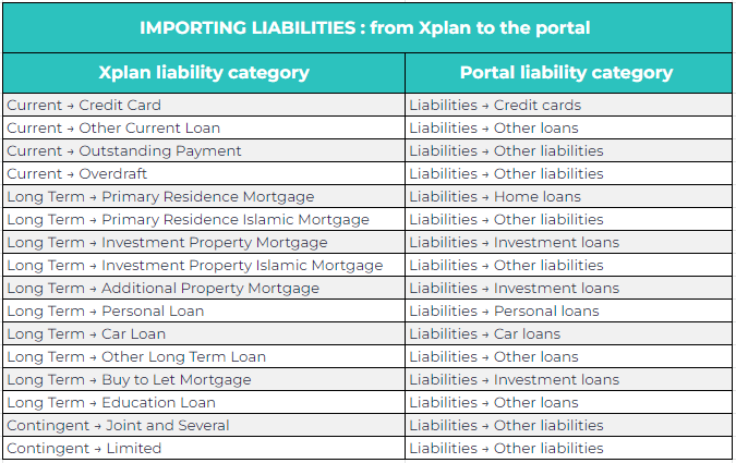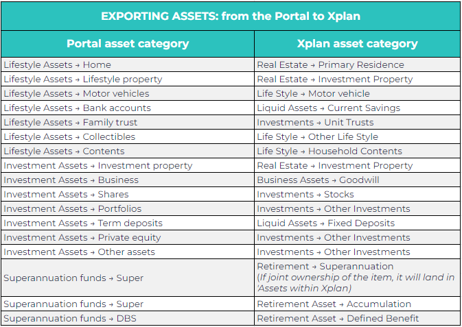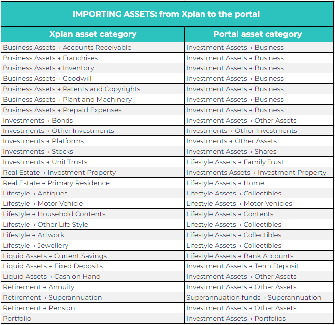 IMPORTANT: The category mappings have been based on a standard generic Xplan configuration. If you have custom categories added to your Xplan setup, some items may fail to import/export.