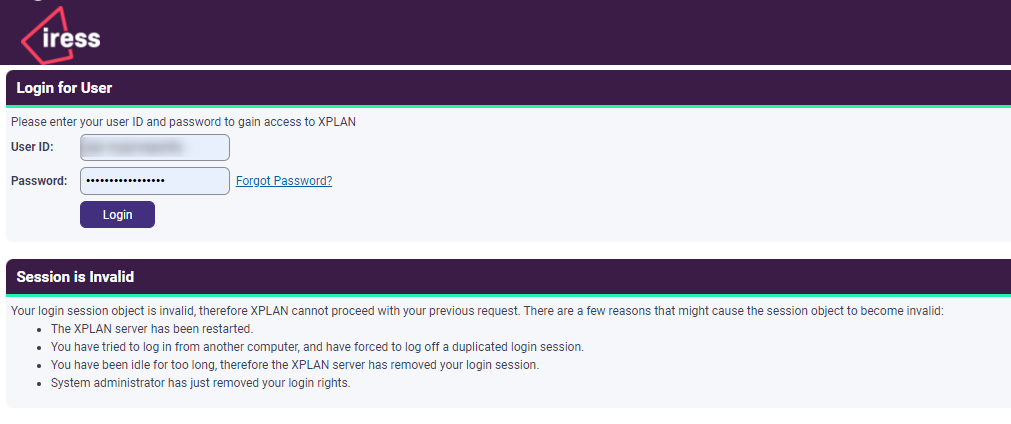 - Log in using your Xplan credentials.