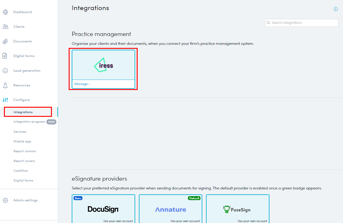 In your Partner Portal, navigate to Configure>Integrations and click 'Manage' within the IRESS tile. - The Xplan Integration setup screen will open. Click 'Update connection'.