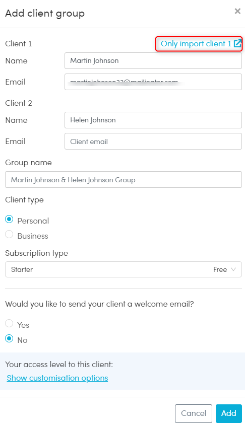 Importing a client group who share an email address from Xplan is like adding an individual and a team member to the client portal.