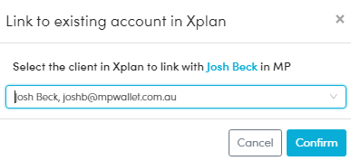- A popup window will ask you to select the client in Xplan that you wish to link to.