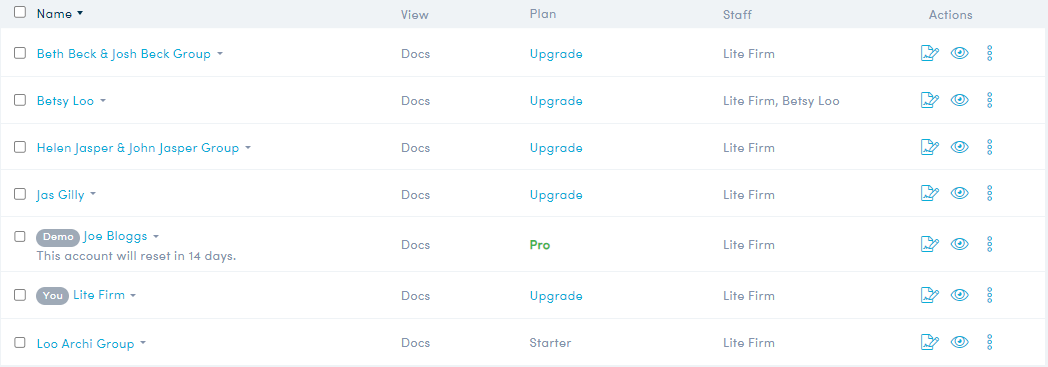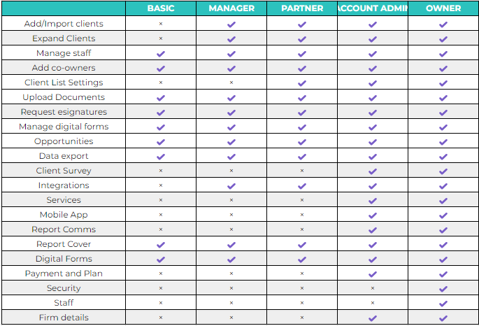 Basic: can only view client accounts: no ability to edit details or send documents for signing