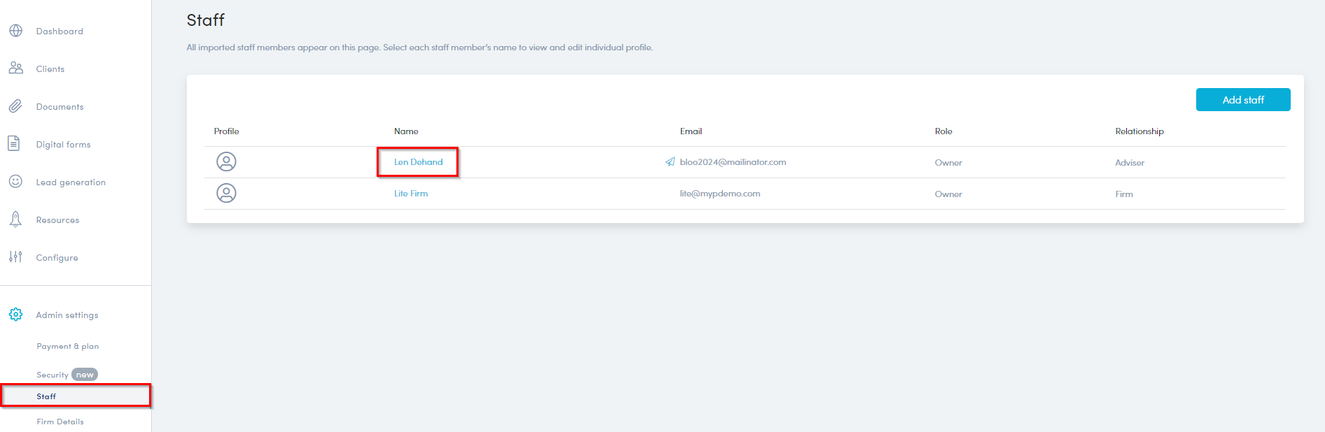 At times, you may need to adjust the permissions for staff added to your partner portal to give them greater visibility of clients and access to more administrative tasks. Staff permissions can be easily adjusted.