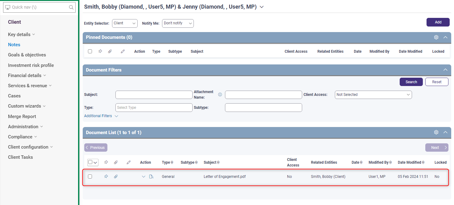 4. The document will now appear in the Documents/Notes section in Xplan.