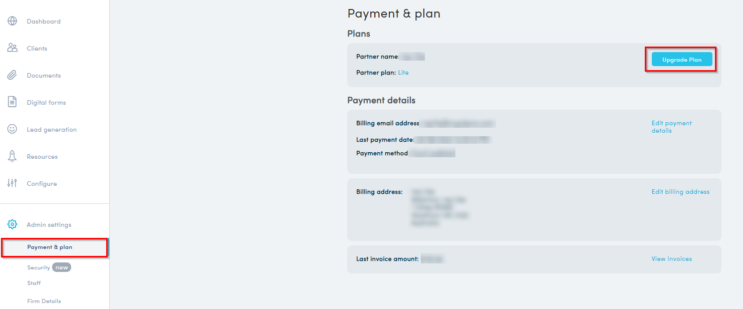 In your Partner Portal, navigate to Admin Settings>Payment & Plan>Upgrade Plan.