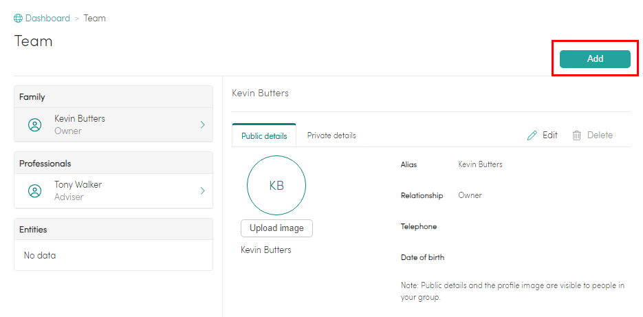 5. You will see the first client exists as the 'Owner' within the 'Family' section.