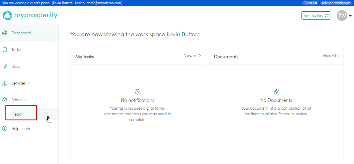 3. Click on the 'viewing eye' next to the client's name within the Client list. This will take you into the client's portal.