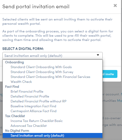 - You have the option to attach a digital form with the invitation, or you can send the invite only. When ready, click 'Send invite'.