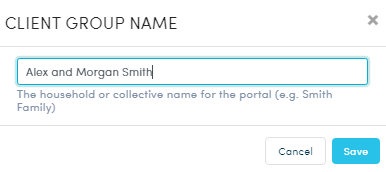 When a group is created, the group's name can be added/adjusted to reflect a universal system within your office, like other programs or just as the user feels is the best name to call the Family or Client group.