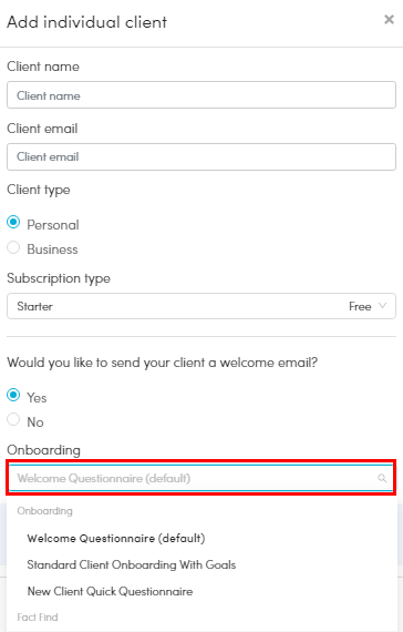 - You will now notice when adding a Client to your Client list, when selecting 'Yes' to sending the client a welcome email that the default digital form is automatically attached.