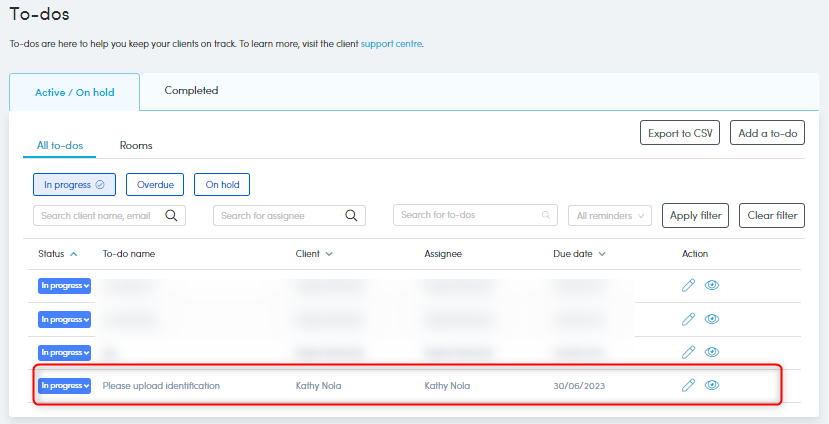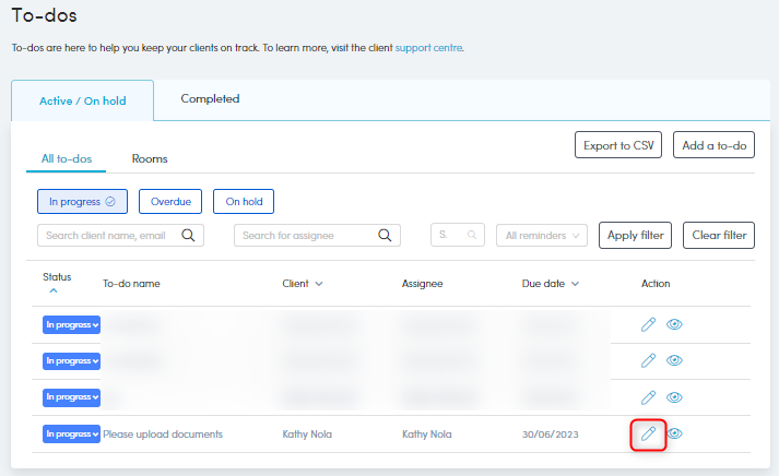 2. Find the To-do you want to edit and click on the edit pencil under the Action column.