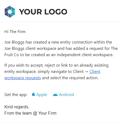 - If your Client has requested a workspace for an entity, you will receive a notification email.