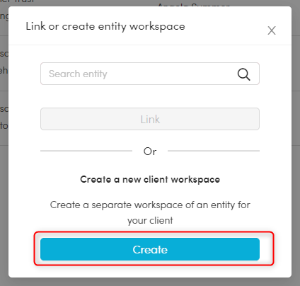 To create a new client workspace for the entity simply click 'Link/Create'.